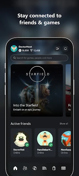 با استفاده از چت صوتی و متنی یکپارچه، می‌توانید با دوستان خود در کنسول یا PC در ارتباط باشید. حتی اگر پای کنسول نیستید، در پارتی‌ها شرکت کنید و هیچ اعلانی (نوتیفیکیشن) از دعوت به بازی یا پیام‌های دوستان را از دست ندهید.